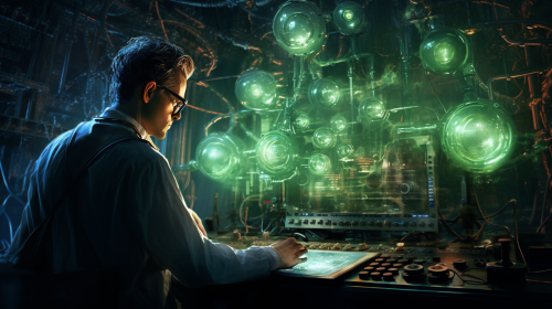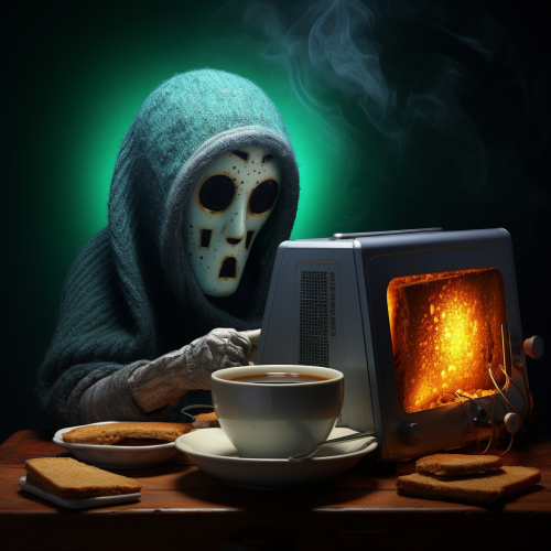 A computer hacker using a toaster; in the style of a Tim Burton movie