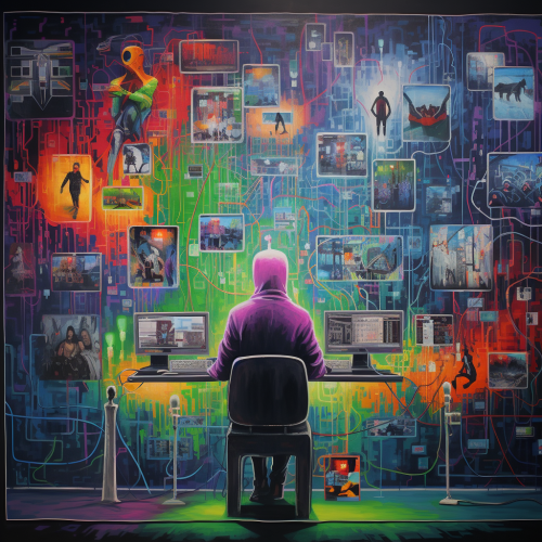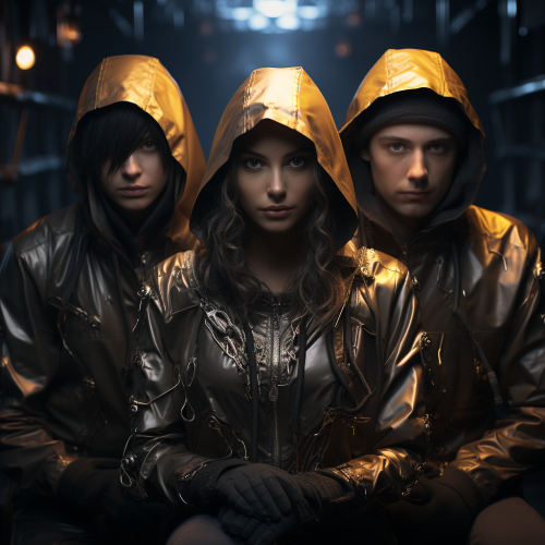 Hacking team called ZeroDay00 we are 4 people gathering to hack a server, ultra-clear details, ZBrush, 3D, movie light sense, 8K --s 750