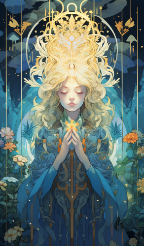 a studio ghibli style art of the high priestess from tarot --ar 7:12