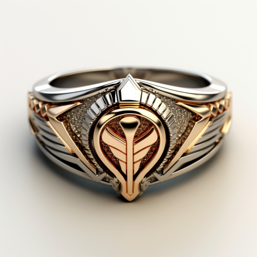 une bague (chevalière) dans un style art deco, métal, inspiration wonder woman, realiste, 4K