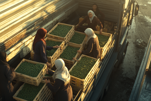 "Medium shot of weathered hands delicately picking ripe olives from sunlit branches. Inspired by Mark Romanek, each olive has rich, deep hues of green , with natural, cinematic lighting enhancing textures. The background is softly blurred, focusing attention on the detailed, careful movement of the hands, conveying a sense of connection and care."