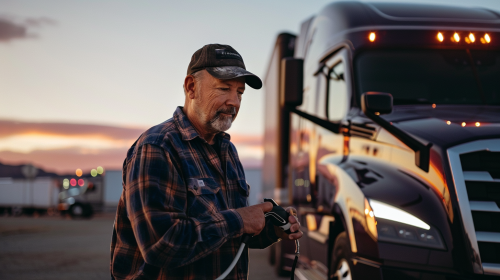 A photorealistic scene of Carl Moving’s team carefully loading boxes into a branded moving truck, employees in uniform smiling, working in sync, parked outside a suburban home, early morning sunlight casting soft shadows, truck logo visible, hd quality, Canon EOS camera sharpness, warm color grading, --ar 16:9 --v 6.0