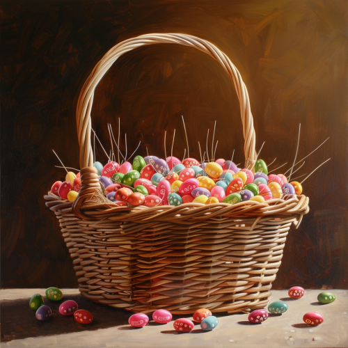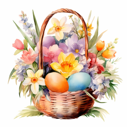 realistic photo of an Easter bunny next to a basket with colorful eggs --ar 2:1 --v 6.0 --style raw
