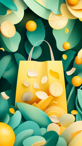 The poster has a soft yellow and green tone as the background, and the marketing atmosphere is strong. In the middle is a yellow blessing bag decorated with commonly used marketing elements, the painting style is three-dimensional, and the harmonious color scheme provides a strong visual impact while maintaining the quality of art and innovation --ar 9:16 --no 3d