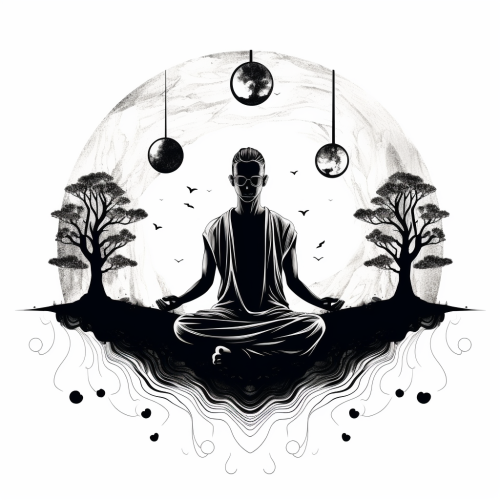 a simple. naive style tattoo design representing meditation - black and white, line drawing - white background, male--ar 36:45