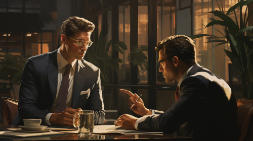 Charistmatic businessman arguer his workmate in office photorealistic --ar 16:9 --s 250