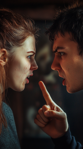 a male adult half elf with a buzzcut argues angrily with a bearded old homeless man wearing chain mail, set in a forest glade --ar 3:2