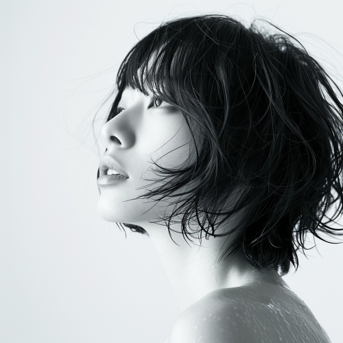 photographic, japanese girl, hair style like hair salon model, upper body, white background, --v 6.0