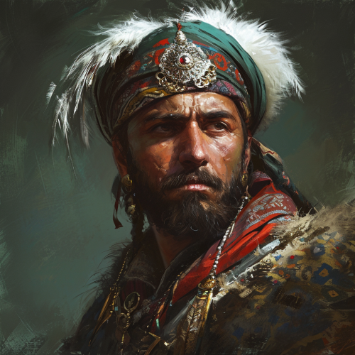 A towering warrior from middle ages, still awake in the early morning inside a rustic tavern, rays of morning light filtering through dust-covered windows, highlighting his scarred face and battle-worn features, remnants of a feast scattered around him, drunk prople on the back, overturned mugs and leftover food littering the table, adding a touch of melancholy, dark mood, dark athmosphere, rendered with Cinema4D for striking light and texture details, --ar 1:1 --v 5.0