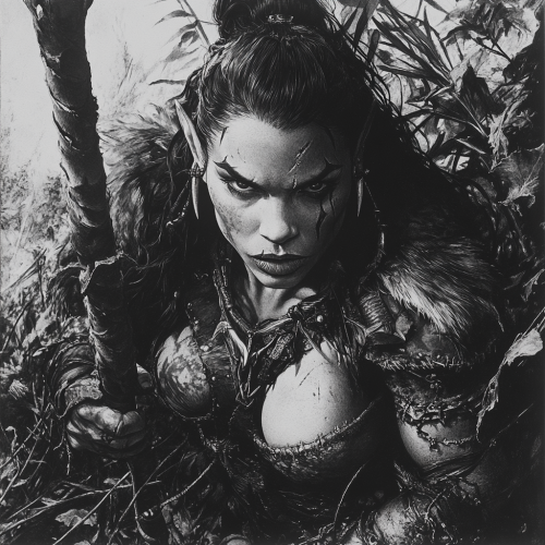 hand drawn style image with dominant black and red colors, highlighted, spiritual being, beautiful woman, dark look, long wavy hair, spiritual red eyes, laughing, spiritual black dress, holding the head of Jesus Christ of Nazareth, Jesus' head torn off and eyes of suffering, walking in a cemetery, spiritual atmosphere, hand drawn style, focus on every detail, sharp details, high quality, high quality graphics, 4k, artstation --v 6.1