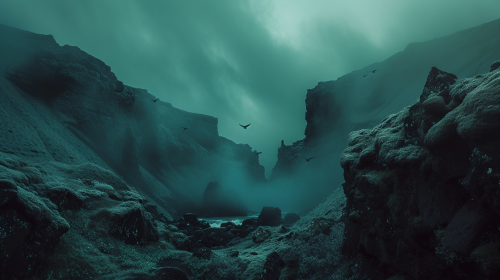 Aurora Borealis, Iceland. fantasy. sony a7r V, 12mm, f/16, wide scenic shot –s 1000 --ar 16:9 --v 6.0