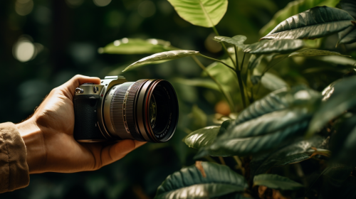 Aspect Ratio: 16:9 Color Grade: Vibrant greens, warm earthy tones Shot Angle: Low angle, looking up through jungle foliage Lighting: Dappled sunlight filtering through leaves Depth of Field: Shallow, with the subject in focus, background blurred Framing: Subject in a hammock, framed by lush jungle plants Saturation: High, emphasizing the vibrant jungle greens Texture Focus: Smooth skin contrasted with rough natural elements Shot Distance: Medium shot Exposure: Well-balanced for sun and shade details Contrast: High contrast between sunlight and jungle shadows Lens Choice: 35mm wide-angle Vignette: Light vignette to draw attention to the subject Refraction: Light refracting through dewdrops on leaves Motion Blur: Subtle blur in moving leaves Grain: Minimal grain for clarity Symmetry: Asymmetrical composition with natural jungle elements Lens Flare: Gentle flare through the trees Shadows: Soft, natural shadows cast by plants Backdrop: Lush, dense Costa Rican jungle