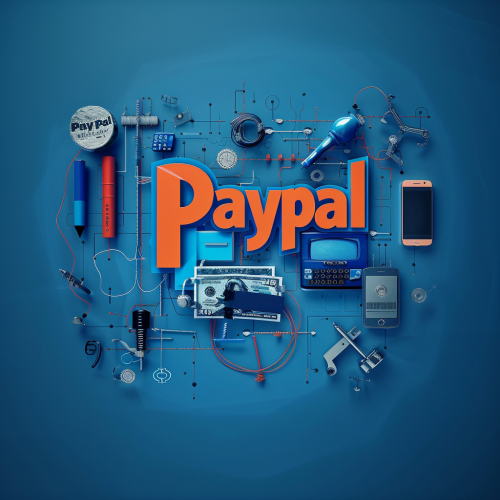 the logo "PayPal" made with 3D gadgets, 3D furniture and 3D groceries