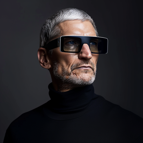 closeup of man wearing a virtual goggle over one eye, apple, --ar 13:9