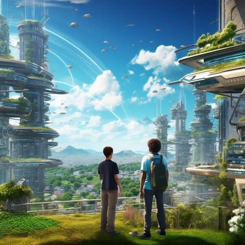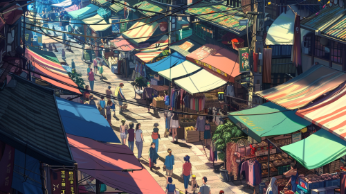 A bustling street market alive with the sights and sounds of vendors hawking their wares beneath colorful awnings, where people gather to sample exotic delicacies and marvel at the latest innovations in technology. Amidst the hustle and bustle, a sense of excitement fills the air, as individuals embrace the endless possibilities of the digital age to shape their own destinies. --ar 16:9