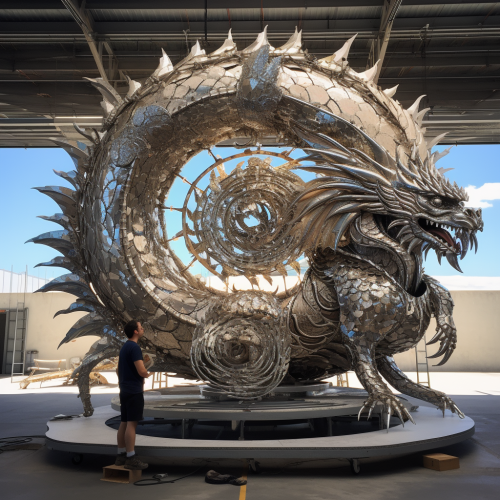 Round 20 foot, mechanical evice,tells the future, HUGE, intricate, moving parts, complicated, made of shimmering dragon scales