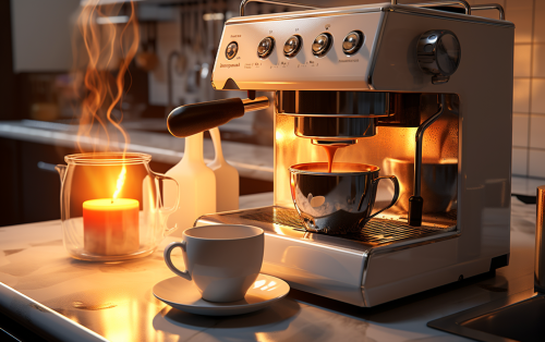 photo of a geyser coffee maker, kitchen, clean modern realistic --ar 8:5