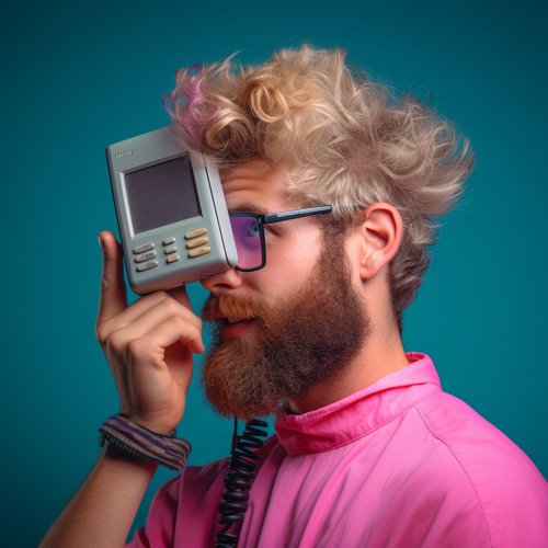 An 80s and 90s-themed room filled with personal technology and health care products. In one corner, a retro desk with a classic 1980s computer, floppy disks, and a vintage cassette player. On a nearby shelf, there are personal electronic devices like a Walkman and early mobile phones. Another section of the room displays personal care products, including an electric shaver and various grooming tools. The decor captures the vibrant and eclectic style of the late 20th century, with bright colors, geometric patterns, and a mix of analog and digital technology that defined the era.