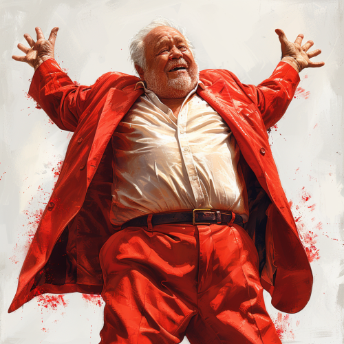 happy, overweight, middleage man . Anime cute SD style of a cute, just a little overweight, no tattos, wearing baseball hat, red shirt, grey beard while doing crossfit.