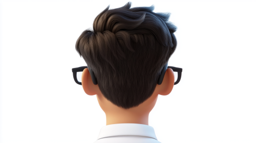 a cute avatar of a psychiatrist listening patiently. the view is from behind head of the patient, who is a 30-year-old german male. solid white background. style of pixar 3d.
