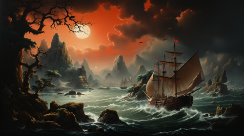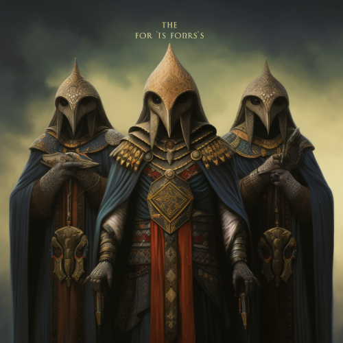 full body portrait of an 1400s Fashion man / 1400 - 1499 / 15th century / confident pose / mystical creatures background
