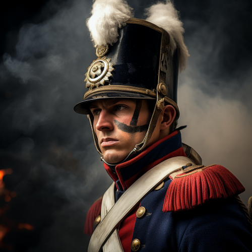 Battle of Waterloo French Soldier Close Up Cannon fire smoke Poppie --s 50