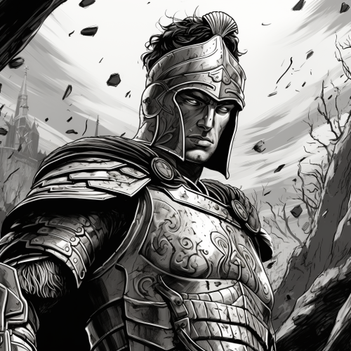 black and white color page. Spartacus of the Third Servile War in full battle armor.