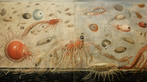 The cambrian explosion, fantastical creatures, incredibly detailed, by giotto di bondone, 1300s vintage fresco --ar 16:9