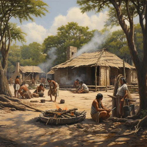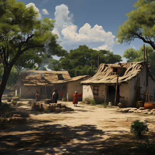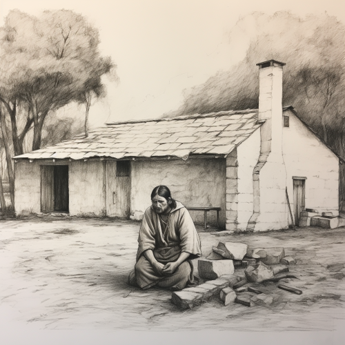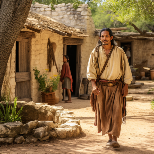 jacal in colonial san antonio 1790, humble dwelling, single story, mission indians outside, loin cloths,