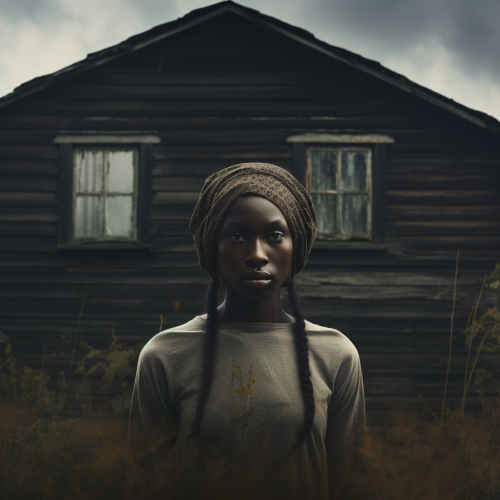 dark skinned woman hiding behind a house 1134 ad in the south of Sweden