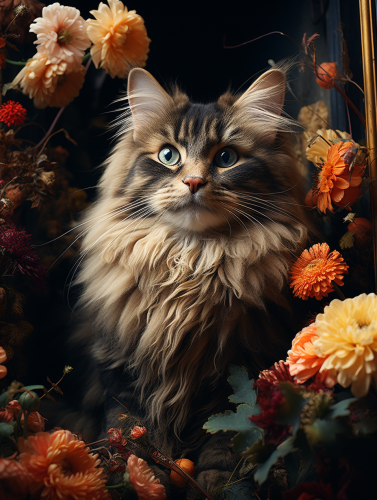 flower garden, cat, fantastic, mysterious grainy, ming dynasty --v 5.2 --ar 3:4 --s 750