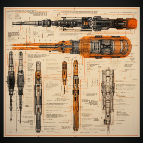 lightsaber blueprint, charcoal and orange accents | papyrus art | Goryeo Blueprint Mapping --style raw