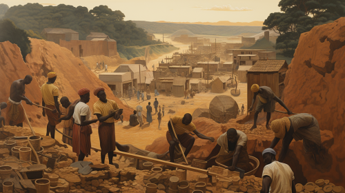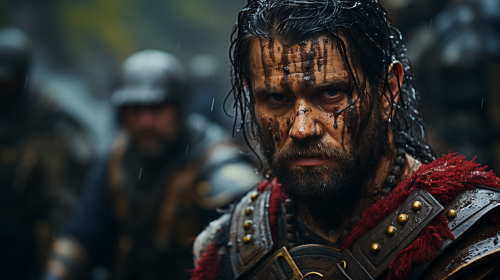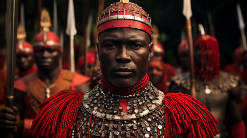 Emma Richards, a highly acclaimed professional photographer, captures a pivotal moment in the In the heart of the Ghana Empire in the 12th century, King Sumaoro Kant, ruler of the ancient kingdom of Soso, attacks a kingdom with his numerous and powerful army. His army has thousands of soldiers, both men and women, they wear war attire in an impressive mix of red and black, they carry African knives and swords. King Sumaoro Kanté has an imposing presence, much like that of a powerful ancient African sorcerer. The image expertly captures the deep historical and ancestral connection of the 12th century Ghana Empire, meticulously depicting the accoutrements, time and place in reverence to the rich cultural tapestry of the time. Add the sensation of movement giving the impression of combat in progress. Photo taken with ARRI Alexa LF or ARRI Mini LF equipped with a Cooke S4/i Prime Lenses, Start with a base ISO of around 800 or 1600, and adjust as needed based on the specific lighting conditions during the shoot. --ar 16:9 --v 5.2