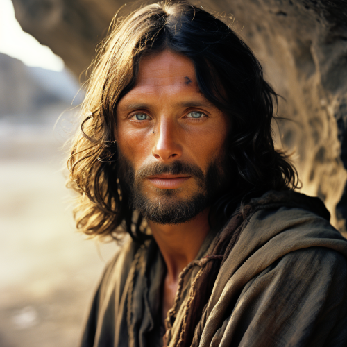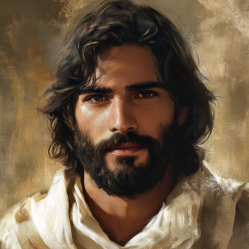 Create a 9:16 depiction of Jesus, focusing on a historically accurate portrayal rather than traditional artistic interpretations. Jesus is a man of Middle Eastern descent, with a complexion reflecting the warm, olive-toned skin typical of the region. His hair is dark, likely curly or wavy, reaching just above his shoulders. His beard is full but neatly kept. He has dark eyes, deep-set and expressive, conveying wisdom and kindness. His clothing is simple, reflecting the attire of a first-century Jewish man: a plain tunic with a mantle or shawl draped over his shoulders. The overall image should capture a sense of humility, compassion, and strength, with natural light emphasizing his approachable and human qualities, rooted in his historical and cultural context