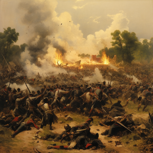 **cinematic photography satellite view civil war battle field many dead union and confederate soldiers cover the ground dirge --ar 16:9 --s 1000