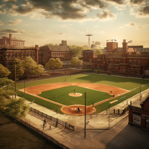 a photorealistic image from the early 1900s baseball diamond in chicago