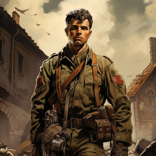 con el estilo de emile bravo comic frances una ilustracion de un personaje de la segunda guerra mundial