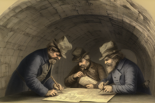 engineers planning tunnel in 1800, vintage image --ar 3:2 --v 5.0