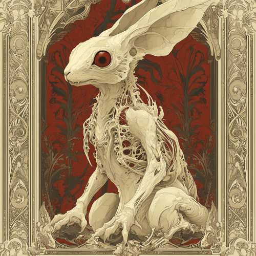 Create a 9-heads-tall soft vinyl (sofubi) figure based on the eerie figure from the uploaded illustration. The character should have an elongated, graceful silhouette, with a slim, gothic black dress that flows naturally down to the feet. The figure must wear a white rabbit mask with large, hollow eyes that evoke mystery and discomfort, perfectly capturing the unsettling elegance of the original artwork. The environment reflected in the figure’s sculpt should mimic the atmosphere of a dimly-lit hallway, with intricate detailing of Victorian-style wallpaper patterns and wooden paneling. Small props or accessories, like a miniature antique wall clock or framed portraits on the walls, can be integrated into the display base to complete the narrative. The face under the mask should remain hidden, reinforcing the enigmatic nature of the character. The figure’s hands should rest lightly at the sides, one possibly trailing along an imaginary bannister, creating a subtle sense of movement and quiet tension, as though she is caught mid-step in an endless hallway. The soft vinyl texture should emphasize the matte quality of the mask and the folds of the dress, avoiding any glossy or plastic-like sheen to maintain an artistic integrity. This is not a Barbie doll but a conceptual art figure--a collector’s piece designed to evoke emotion and narrative, resonating with themes of surrealism, isolation, and hidden identity. The base could include subtle textures, such as wood grain or fading wallpaper, to immerse the figure within the haunting world it belongs to, further bridging the boundary between figure and environment.
