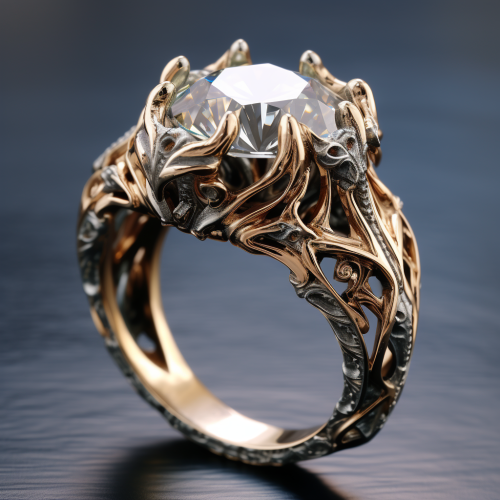 expensive, clear diamond, ring with demonic designs --ar 1:1