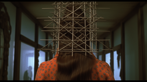 dvd screengrab of a spine in the shape of a cross, siren, directed by nobuhiko obayashi, style of alejando jodorowski, uncanny valley, hausu 1977, suspiria 1977, thalassophobia. --v 5.0 --ar 16:9