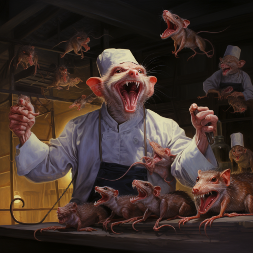 evil laughing, veterinary surgeon experimenting on rats, red liquid everywhere, evil experiments, photorealistic, very detailed, veterinary anatomy