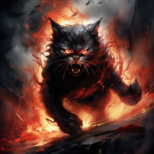 a cat that has transended beond the mortal mind and has become a super natual being and has become evil and is casing terror on the human race