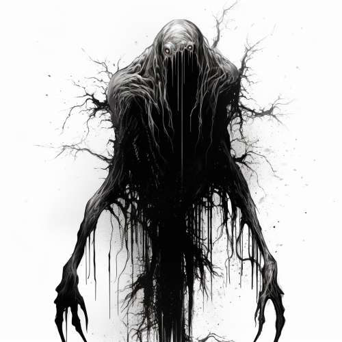 Painting on a white background, of an full body standing pose of a medieval townsfolk who is ravaged with the Void Spawn Plague, like a medieval version of John Carpenter’s The Thing, he is ravaged by a plague from the Elder’s Realm, from Dungeons and Dragons, full body, gestural painting, gestural drawing, expressive figuratism, style of Eric Belisle, distorted form, charcoal sketches, deconstructive, abstract, figurative, figurative drawing, academic drawing, dreamlike sequences, expressive line-work, impressionist, --ar 2:3 --niji