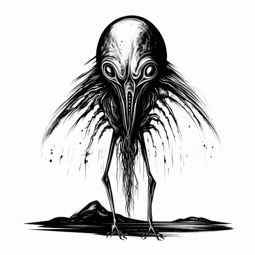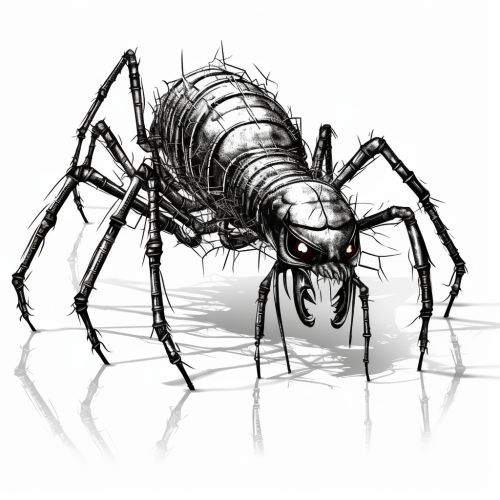 extreme surrealistic dark insect creature, morphing of spider and centipede, no wings, extreme dark surrealism, horror creature, full motive, no cutoff, only clear black lines on plain white background, high contrast, only black line motive --no wings