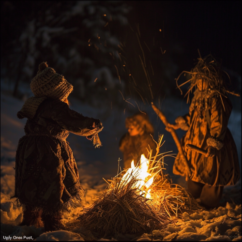 a close up of a campfire, surrounded by hundreds of trees that block outthe world around it. ink art. sketch. Simple art style. A storyboard animatic frame, black and white, Simple art style. Full view. HEAVY FOREST OF DARK TALL TREES. Sky is black
