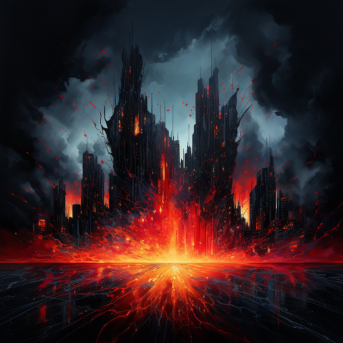 abstract minimal art, neon on black background, illsutrating immense pain and setting the city on fire for someone you love, but there is rebirth --s 250