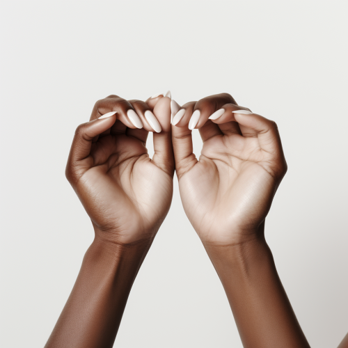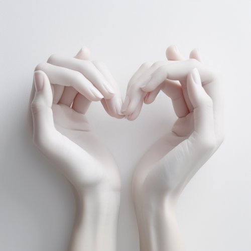 close-up of a heart shape formed with the fingers of two different people, light environment, photorealistic, 4K resolution