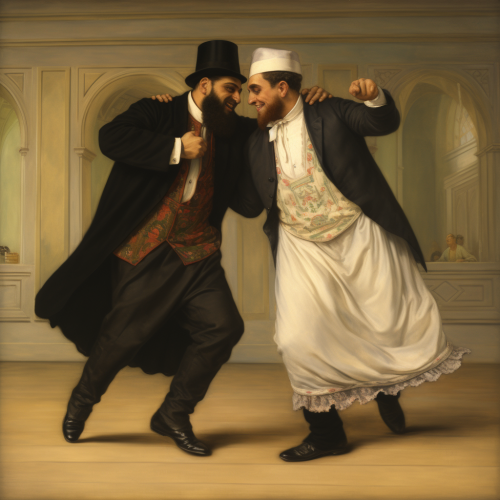Jewish rabbi and Muslim cleric gay dancing affectionately --v 5.2