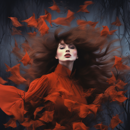 Create an image, a reflection of the complex emotions of a human, where the main characters will be an animal reflecting the answers, and a human, show all the manifestations of feelings that will be below without text, translate everything into the emotions of this human: Animal's hidden desires add answer: Imperfection., Magpies, flocks of birds., Determination., I can’t start a relationship with a man again. Imbue the image with past experiences. Add answer: Betrayal of husband, sister, mother. Death of a daughter, Divorce from her first husband, Reflect your fears in the image by creating a multifaceted image Add answer: Fear of financial instability. Show doubt in the image Add answer: I criticize myself for lack of concentration on the main goal, excessive involvement in other people's problems, softness. Reflect the character traits of an animal and a person in the picture Add answer: Sincerity., Caution, slowness. Reflect specific personality traits Add answer: Dreams of starting an organic farm. Show the wishes of everyone who is present in the image in the background Add answer: Witch --no text